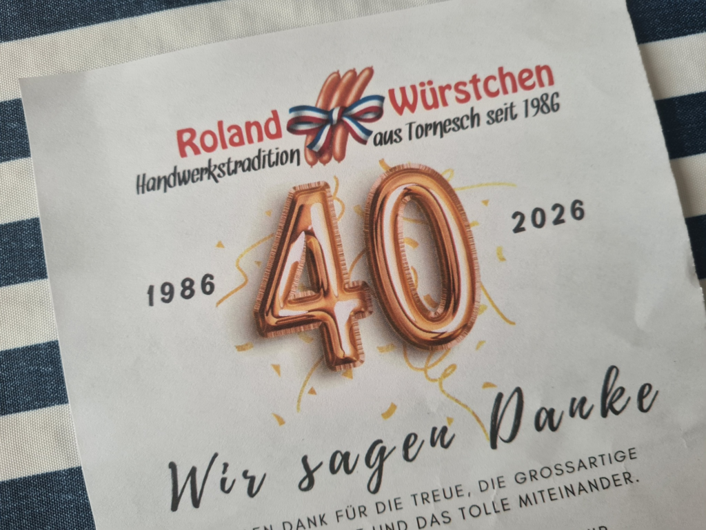 Unser langjähriger Partner, unser Fleisch- und Wurstwarenlieferant, Roland Würstchen aus Tornesch im Kreis Pinneberg feiert in diesen Tagen 40 jähriges Firmenjubiläum.