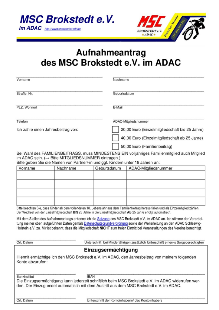 Der Aufnahmeantrag zum